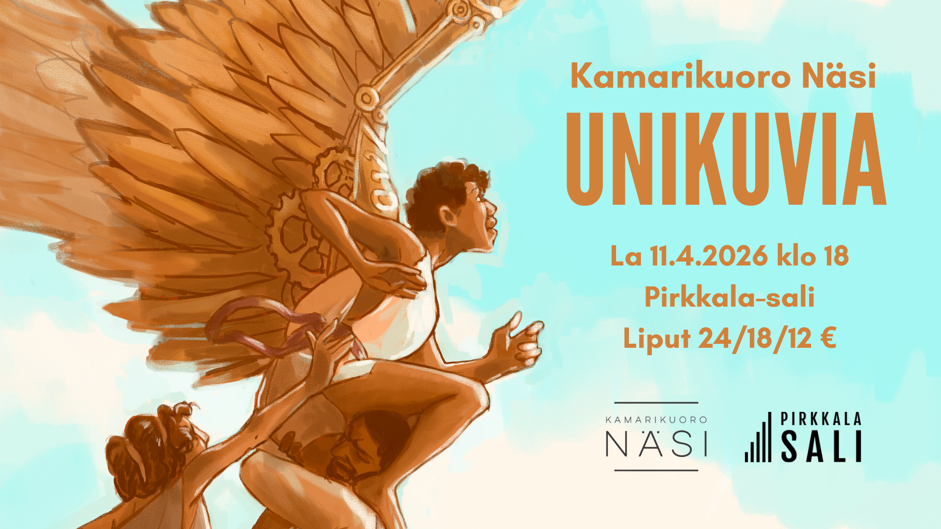 Palkitun tamperelaisen kamarikuoron monipuolinen ohjelmisto vie sinut tunnelmasta toiseen: ensin illan hiljaiseen odotukseen, sitten yön kiehtoviin kuviin, joissa mikä tahansa on mahdollista – jopa lentäminen. Ja kun viimein aamun ensimmäinen valo hiipii horisontissa, musiikki johdattaa sinut takaisin – uudistuneena, kevyempänä.